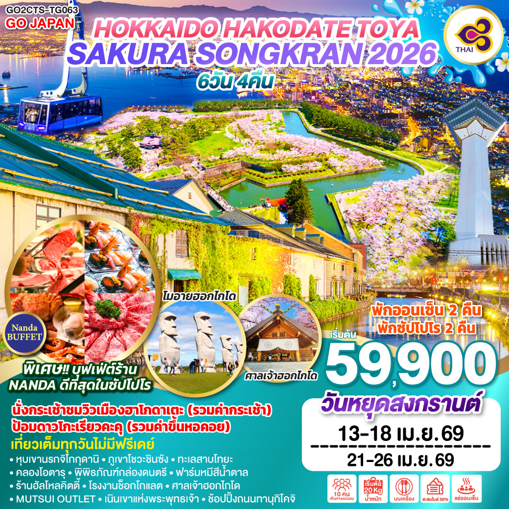 HOKKAIDO HAKODATE TOYA SAKURA SONGKRAN 2026 6D 4N โดยสายการบินไทย [TG]