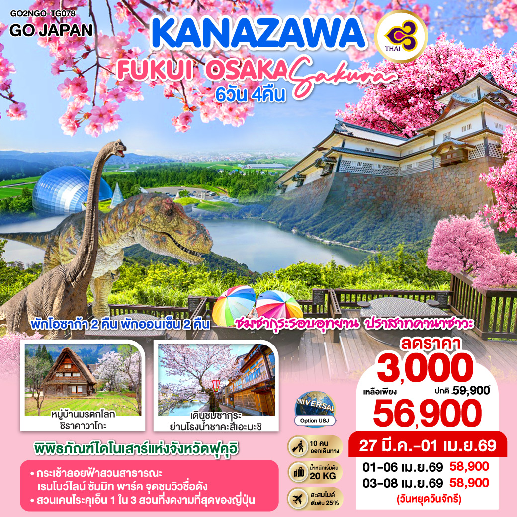KANAZAWA FUKUI OSAKA SAKURA 6D 4N โดยสายการบินไทย [TG]