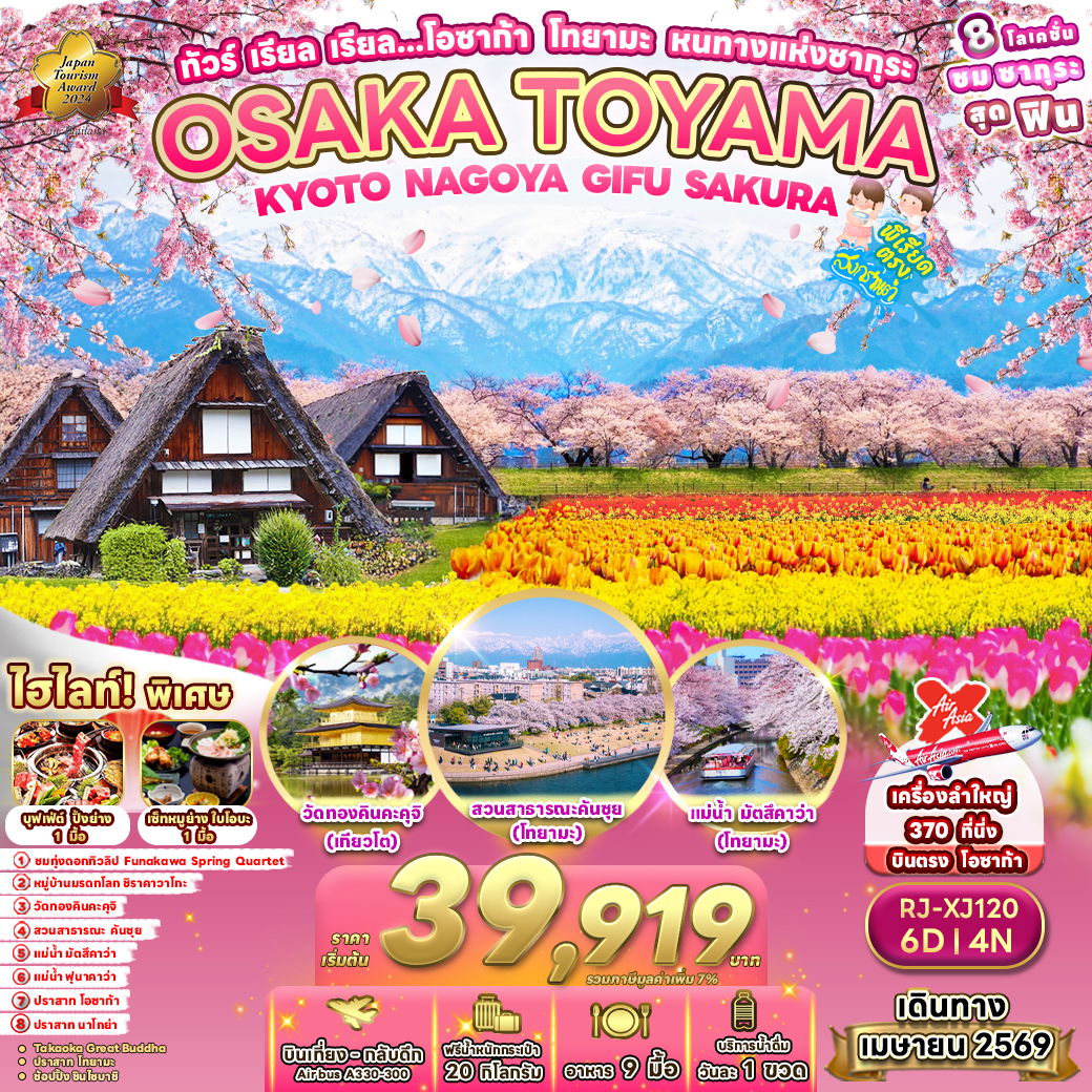 RJ-XJ120 ทัวร์ เรียล เรียล…โอซาก้า โทยามะ หนทางแห่งซากุระ