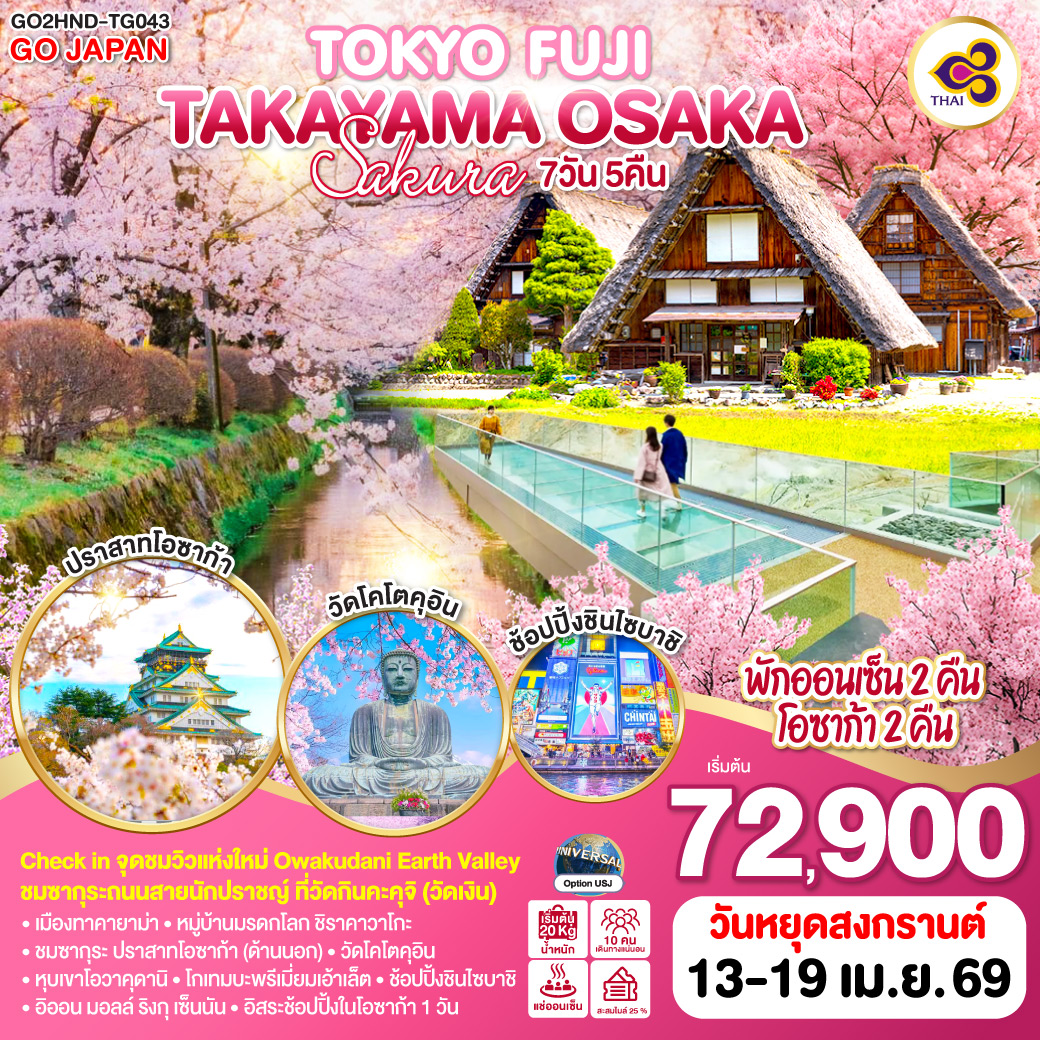 TOKYO FUJI TAKAYAMA OSAKA SAKURA 7D 5N โดยสายการบินไทย [TG]